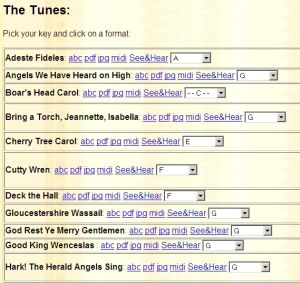 Wassail! ABC FakebookAuf dieser Seite findet man verschiedene englische und amerikanische Weihnachtslieder. Mit der Option See & hear kann man die Lieder anhören und gleichzeitig die Noten sehen. Dabei kann man sogar noch die Tonart beliebig wählen - ideal zum Üben! On this site you can find many English and American Christmas songs: |