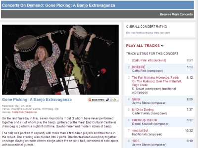 Wie immer bei diesen Konzerten ist es sehr interessant den einzelnen Künstlern nachzugehen. Auf diesem Weg kann man sehr viel interessantes entdecken. Ich habe bisher die Homepages von Cathy Fink und Marcy Marker und die Homepage von Jayme Stone besucht.
